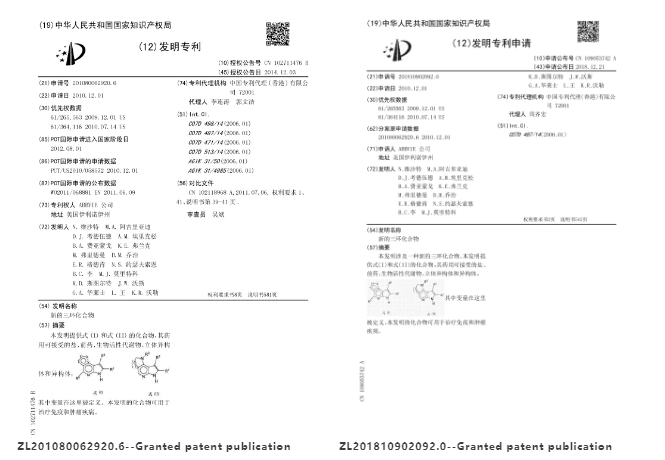 在中国上市药品专利信息登记平台中,艾伯维公司针对乌帕替尼缓释片登记了2篇授权有效专利: