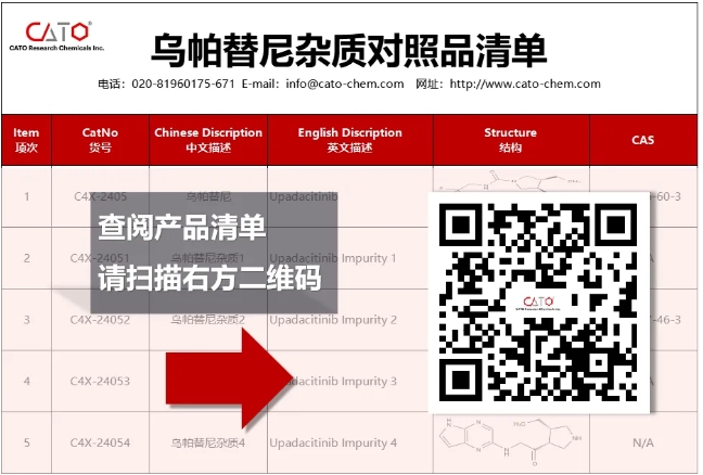 随着乌帕替尼市场的拓展,其质量把控至关重要,杂质对照品不可或缺。CATO 提供的乌帕替尼杂质对照品,助力构建质量控制体系,保障药品质量,加速药物研发。