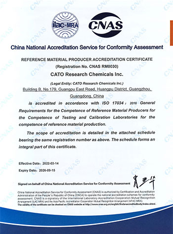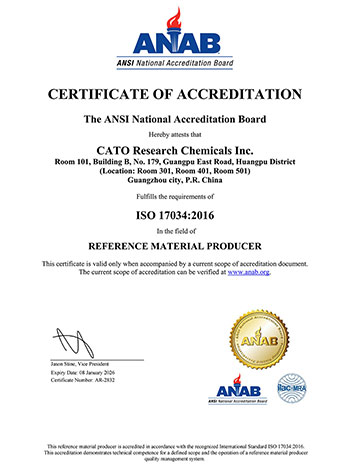CATO已通过多项国际质量标准认证,包括美国ANAB ISO17034、中国CNAS ISO17034以及ISO9001。我们完善的质量管理体系确保我们能够持续为客户提供高质量的产品和服务。